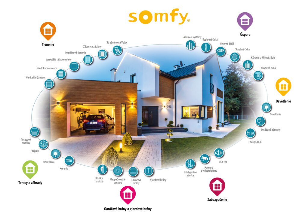 Automatizovaná domácnosť vám ponúkne výnimočný komfort, bezpečie a úspory na energiách. Jednoducho a rýchlo tak môžete ovládať svoje osvetlenie, vonkajšie tienenie, ale aj vnútorné žalúzie. Predstavujeme automatizáciu domácnosti v podaní našej partnerskej spoločnosti Somfy!